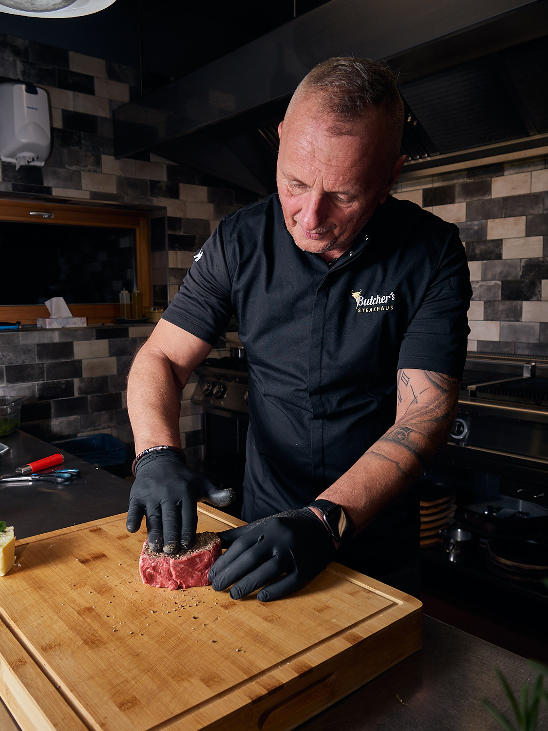 Im Butcher's Steakhaus finden Sie eine breite Auswahl an hochwertigem Rindfleisch, das wir direkt von ausgewählten Züchtern aus Österreich beziehen. Unsere Steaks werden Dry Aged vorbereitet und anschließend auf dem Lavagrill und im Holzkohleofen zubereitet, um den Geschmack und die Qualität besonders hervorzuheben. Wir bieten verschiedene Cut-Typen wie Filet, Ribeye, Flank, Chateaubriand und Butcher's exklusive Platten, die alle von unserem erfahrenen Grillmeister und Chef Robert zubereitet werden. Lassen Sie sich von unseren leckeren Steaks verwöhnen und genießen Sie das perfekte Geschmackserlebnis!